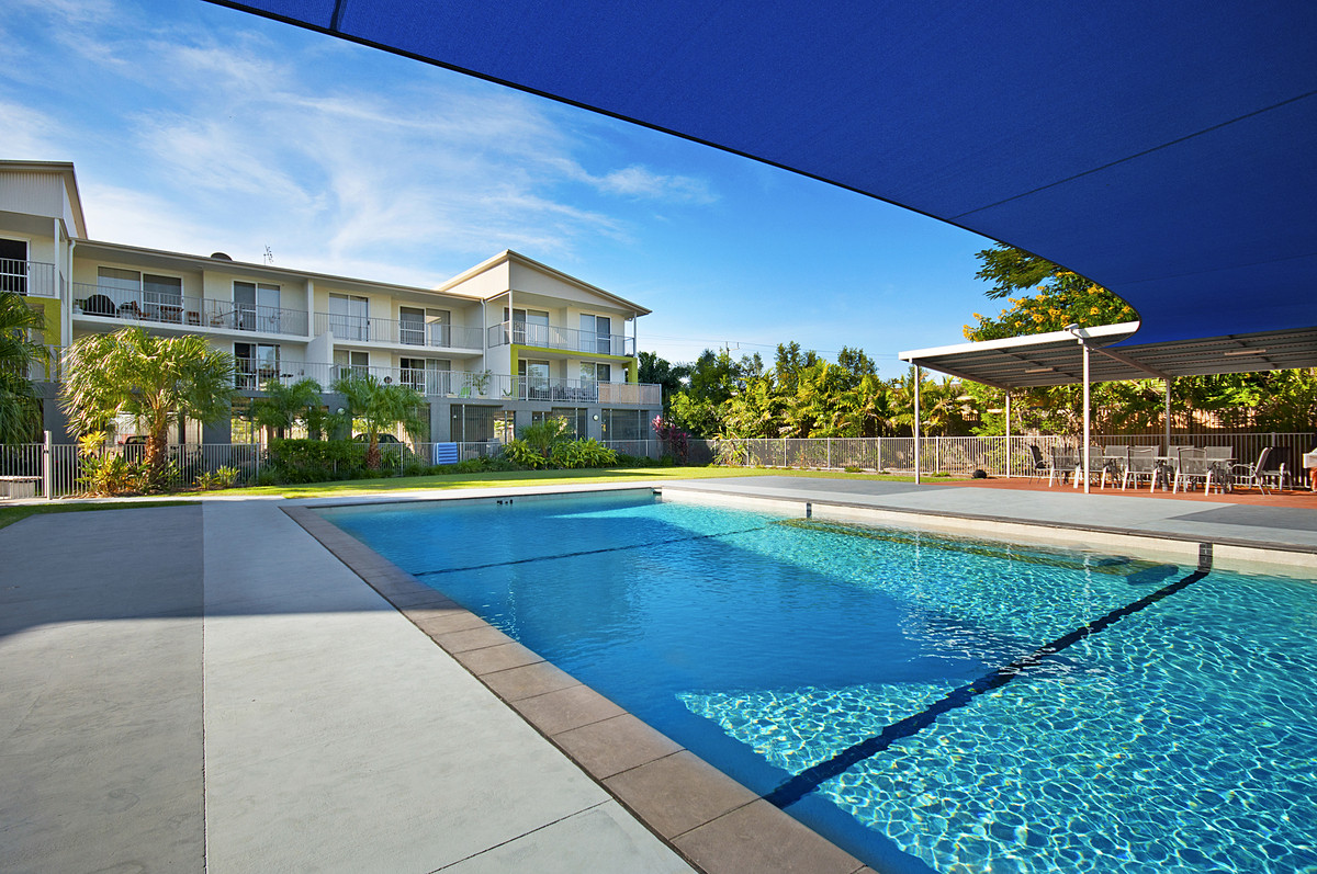 – Great views from the undercover patio, overlooking the massive inground pool & communal BBQ area