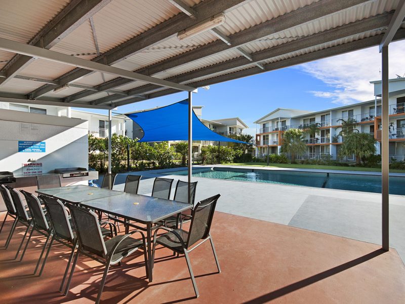 – Great views from the undercover patio, overlooking the massive inground pool & communal BBQ area