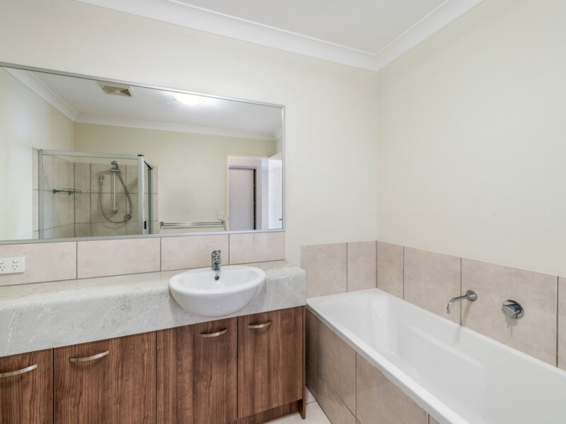 There is nothing needing to be spent, and features include: easy care tiled floors in living, carpet in bedrooms, split system air-conditioning in master and living, ceiling fans, separate bath and shower in main bathroom, tasteful modern décor, and water tank.