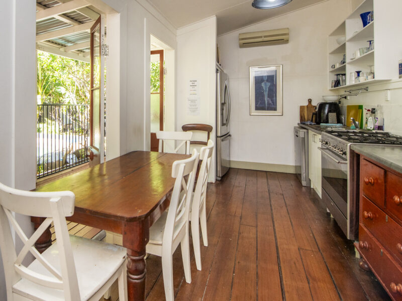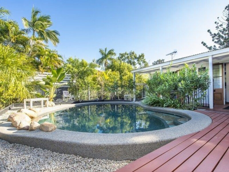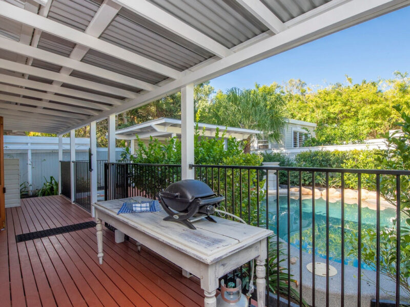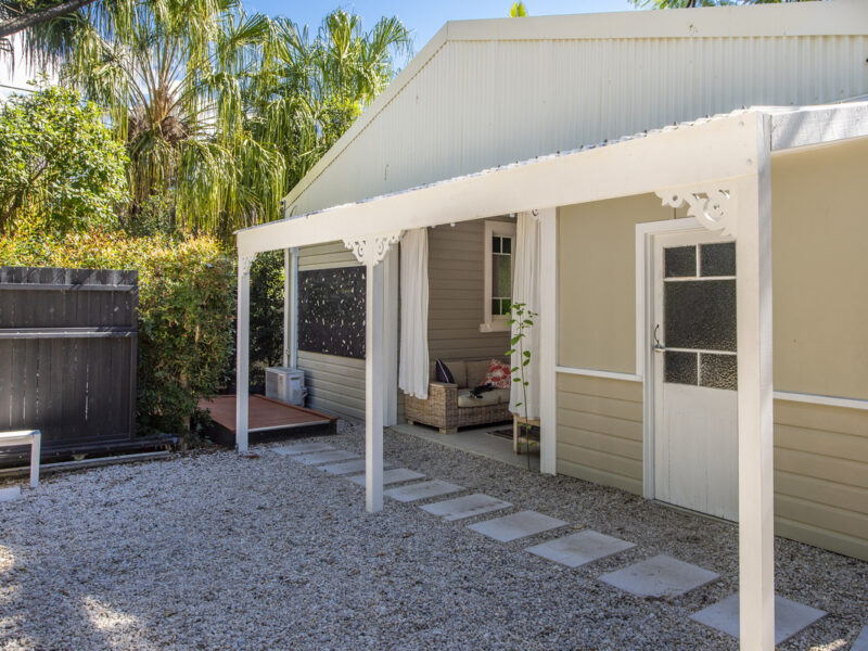 The main home is a Classic 2- bedroom, 2-bathroom Queenslander featuring polished floorboards throughout, high ceilings, air conditioning and ceiling fans. Leading out from the open plan spacious kitchen will take you to the rear veranda which overlooks the plush gardens, the amazing crystal-clear swimming pool and Cabana where all the entertaining is to be had.